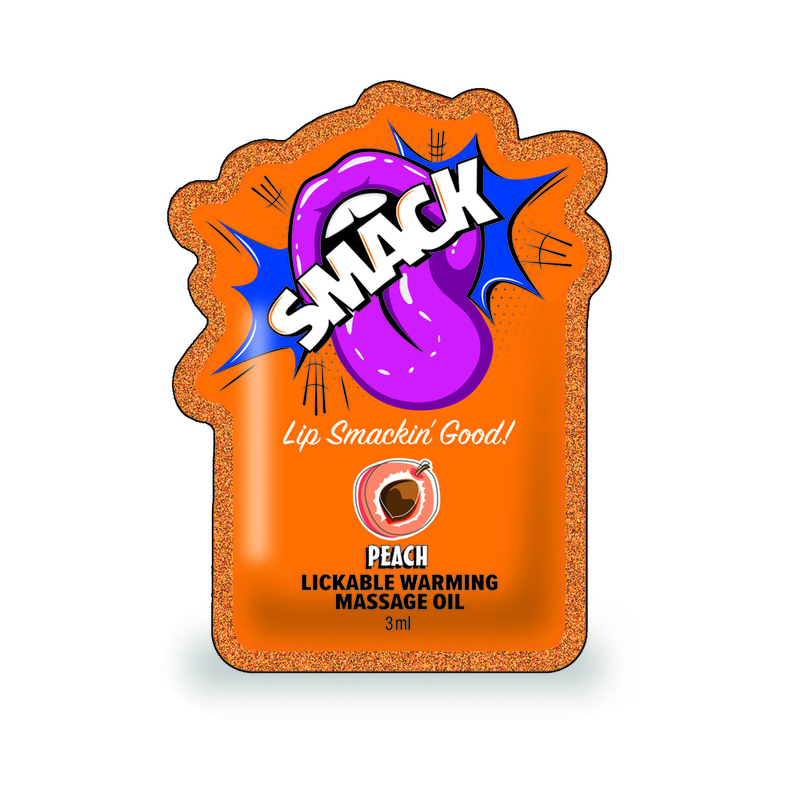 Discover the ultimate sensory experience with SMACK Lickable Massage Oil now available in a handy 3ml pouch. Perfect for spontaneous moments this compact size ensures you're always ready to indulge in a tantalizing massage journey. The Peach flavor offers a sweet and playful twist inviting you and your partner to explore a world of taste and touch.