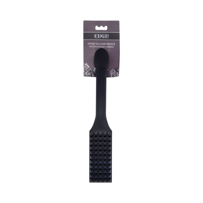 Power in your hands. Punishment in every strike. The Edge Spiked Silicone Paddle delivers sharp stinging impact that awakens the skin and commands attention. Rows of raised silicone spikes bite with precision creating a mix of pain and pleasure that lingers long after contact. The metal-reinforced insertable handle delivers power stability and a satisfying versatility that transitions effortlessly from impact to indulgence. Crafted from 100% body-safe silicone it's easy to clean durable and built for play that pushes limits. Designed for those who crave intensity this paddle doesn't just leave marks it leaves memories.