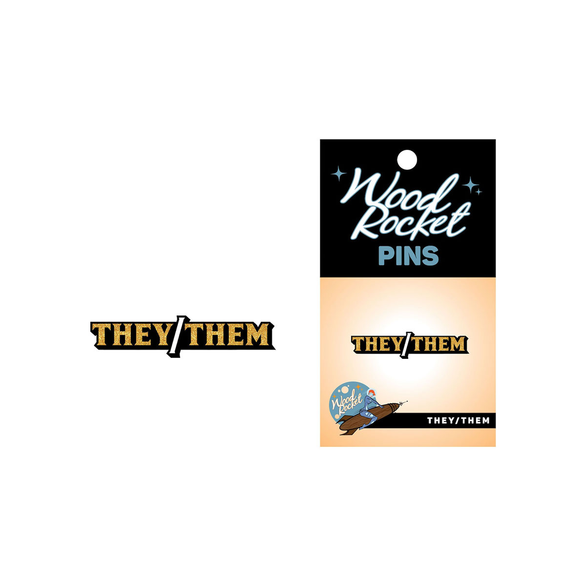 Wood Rocket They/Them Pin